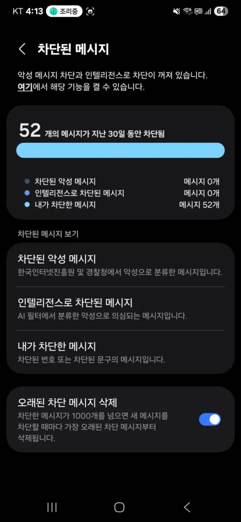 첫번쨰 칸에 차단된 메세지를 들어가세요. 이곳에서는 차단된 메세지 확인이 가능합니다.