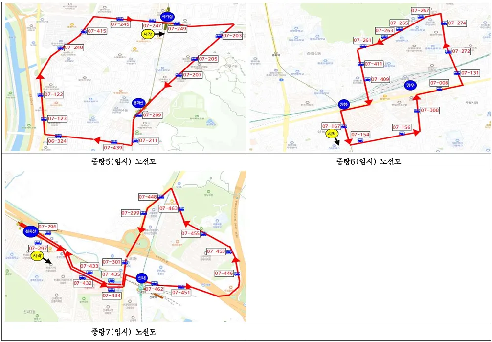 노선 7이 24회로 안내되어 있어 상대적으로 운행 횟수가 많습니다. 같은 30분 간격이라도 노선별 횟수 차이가 있으니, 자주 쓰는 구간이라면 운행 횟수까지 함께 보면 체감 편의가 달라질 수 있습니다.
